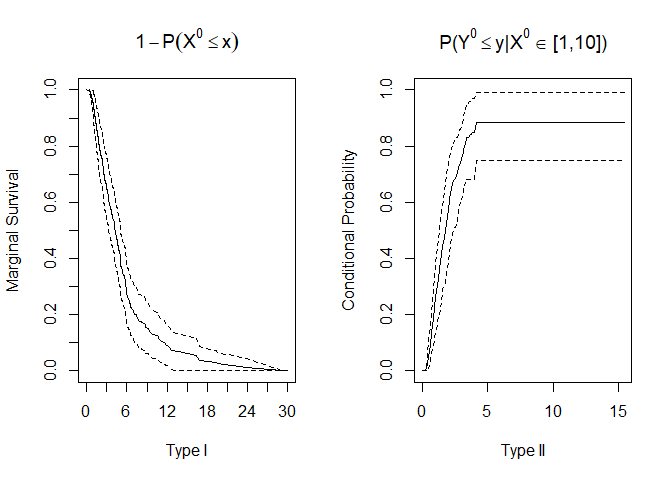 #> [1] "Estimating conditional cdf with 99% confidence interval using 200 bootstrap samples"