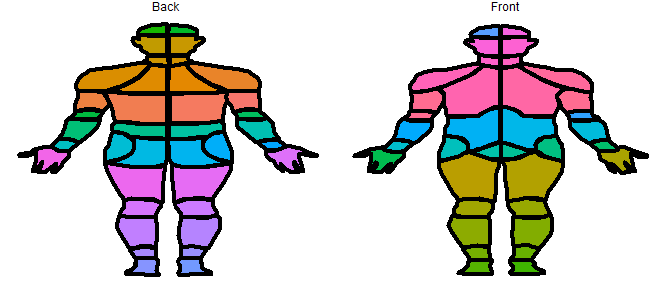 # plot each segment of the bodymap as a different color
