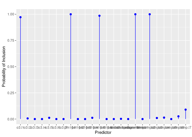 As before the intercept can also be included but note that the intercept is assumed to have 100% inclusion by default.