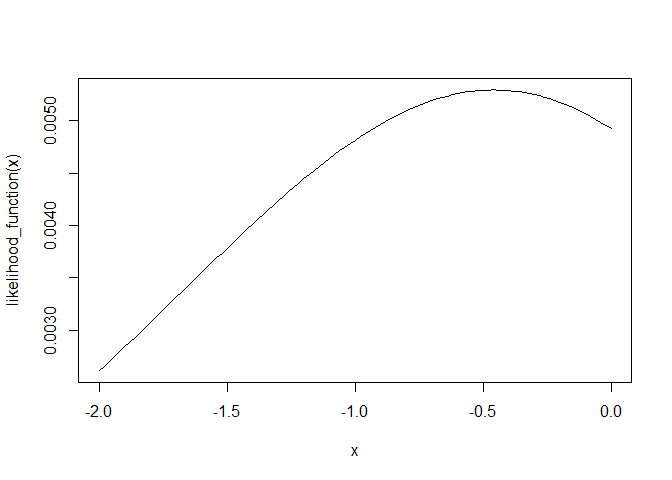 <- optimize(likelihood_function, interval=c(-2, 0), maximum=TRUE)