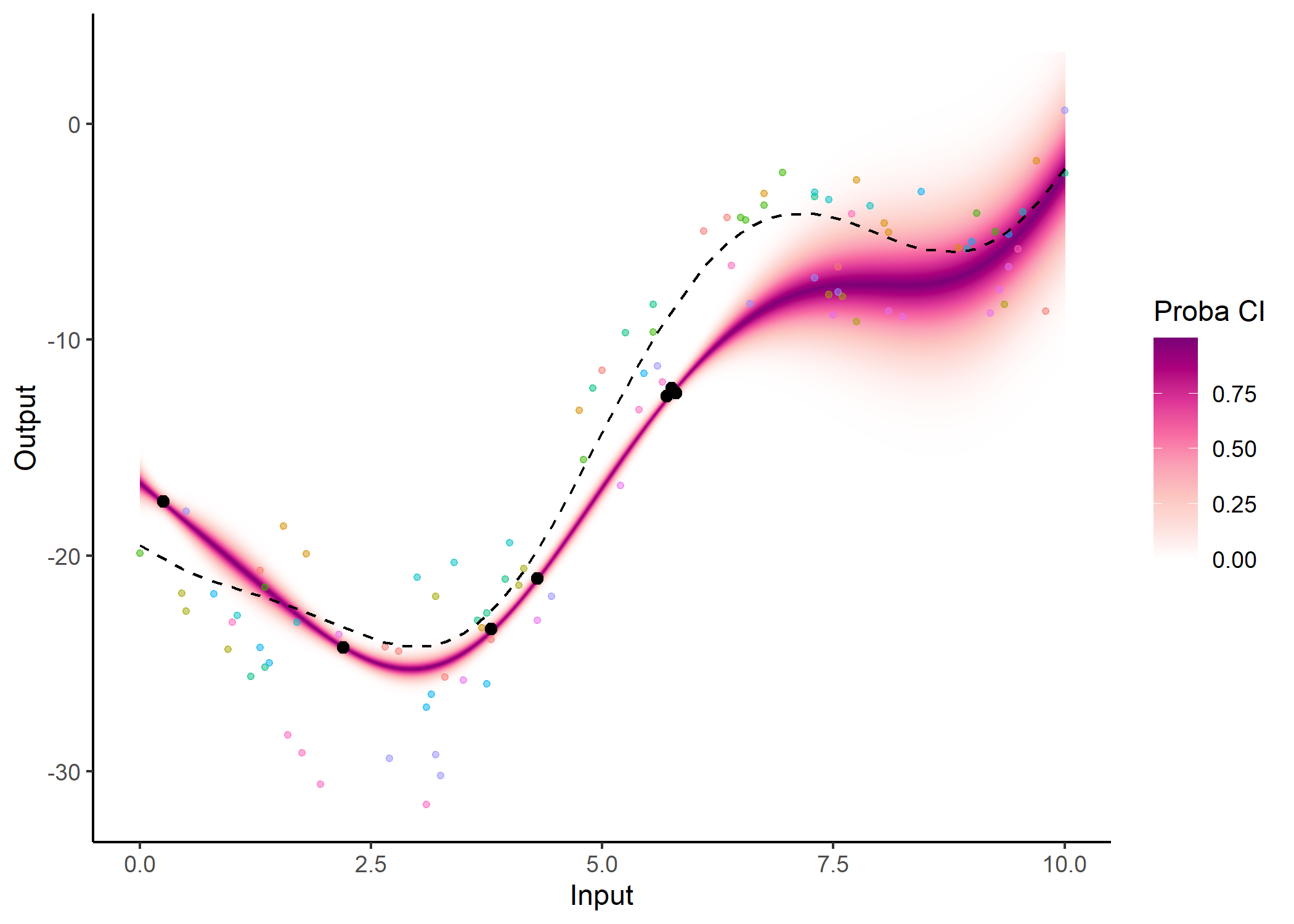 Several other arguments are available in dedicated plotting functions to offer extended options in the display of results. For instance, the GP predictions can be represented as a heatmap of probabilities: