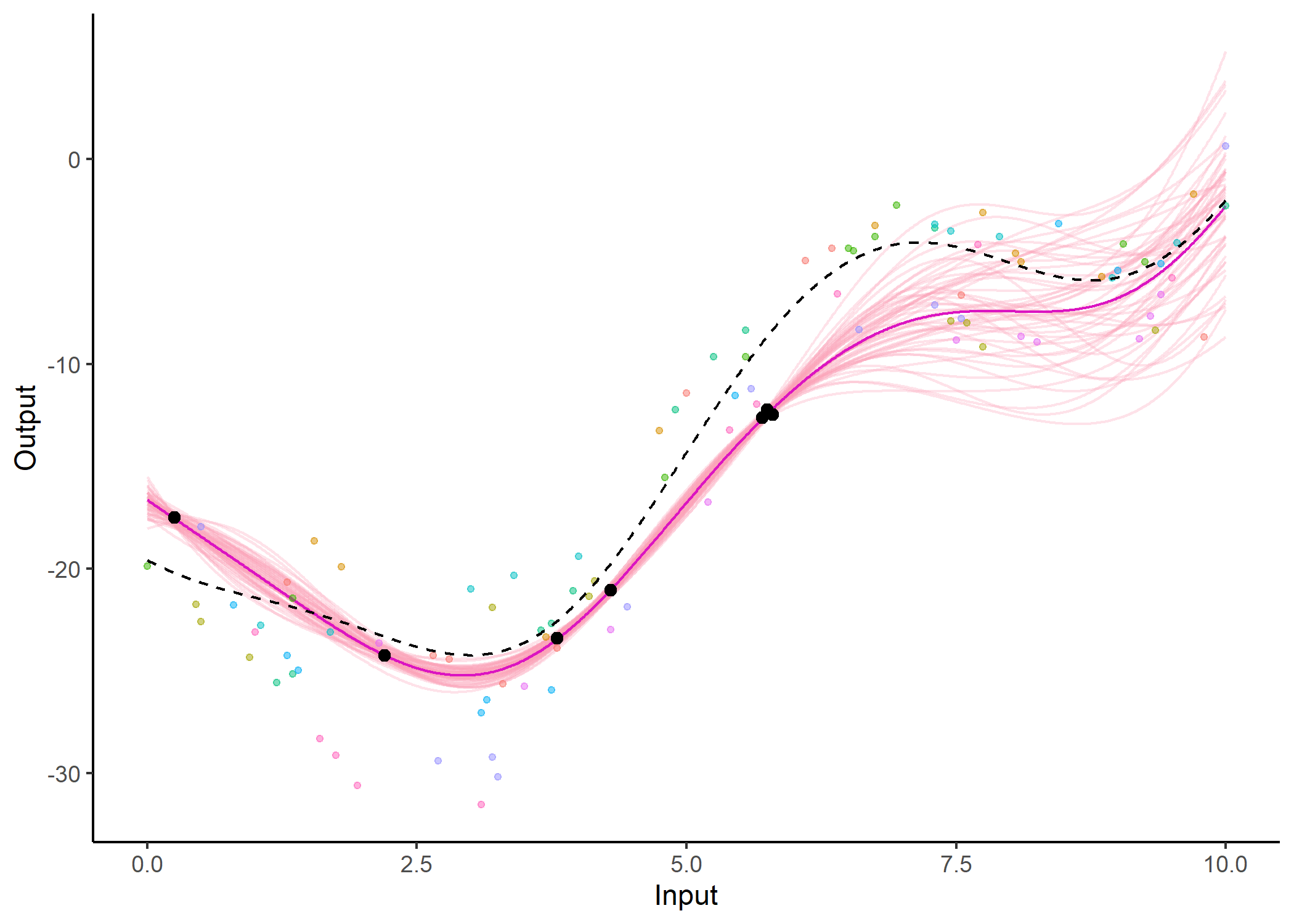 #> The hyper-posterior distribution of the mean process provided in 'hyperpost' argument isn't evaluated on the expected inputs. Start evaluating the hyper-posterior on the correct inputs...