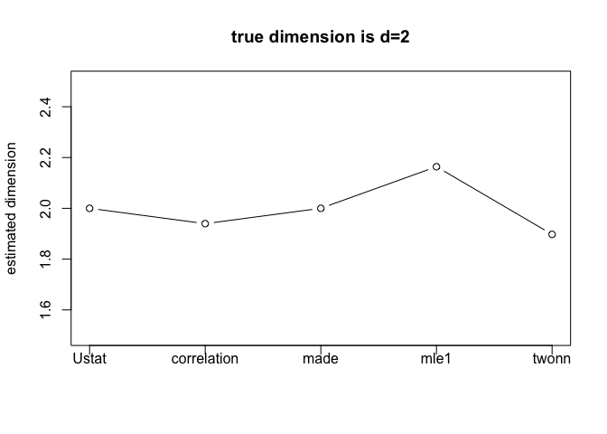 vecd 1] = est.Ustat(roll)$estdim # convergence rate of U-statistic on manifold