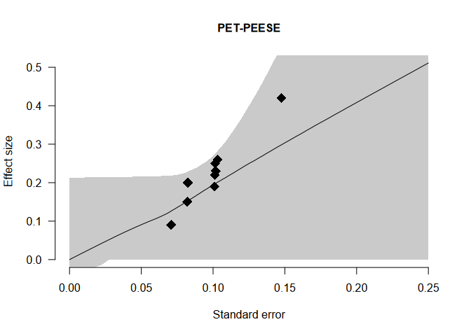 plot(fit, parameter = "PET-PEESE", xlim = c(0, 0.25))
