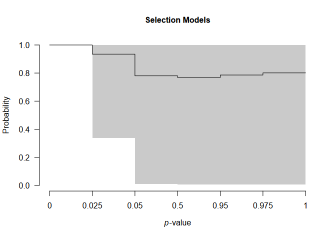 #> (Estimated publication weights omega correspond to one-sided p-values.)