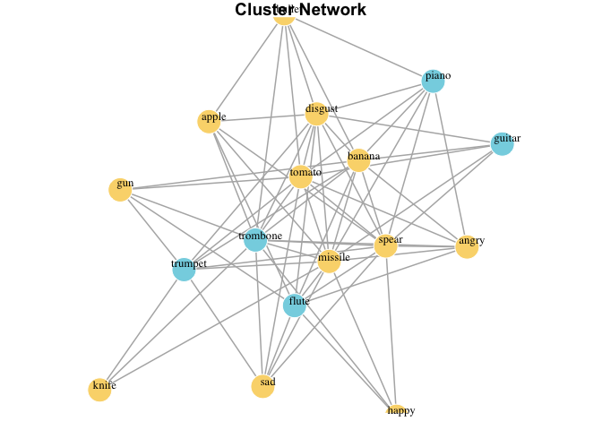 MyCleanList <- wordlist_to_network(MyCleanList, output='network', dist_type='embedding') mynetwork