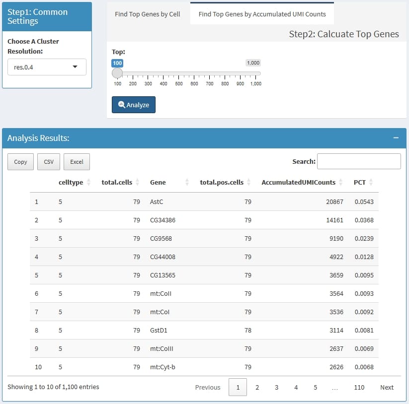genes by Mean UMI counts. if a cluster has less than 3 cells, this