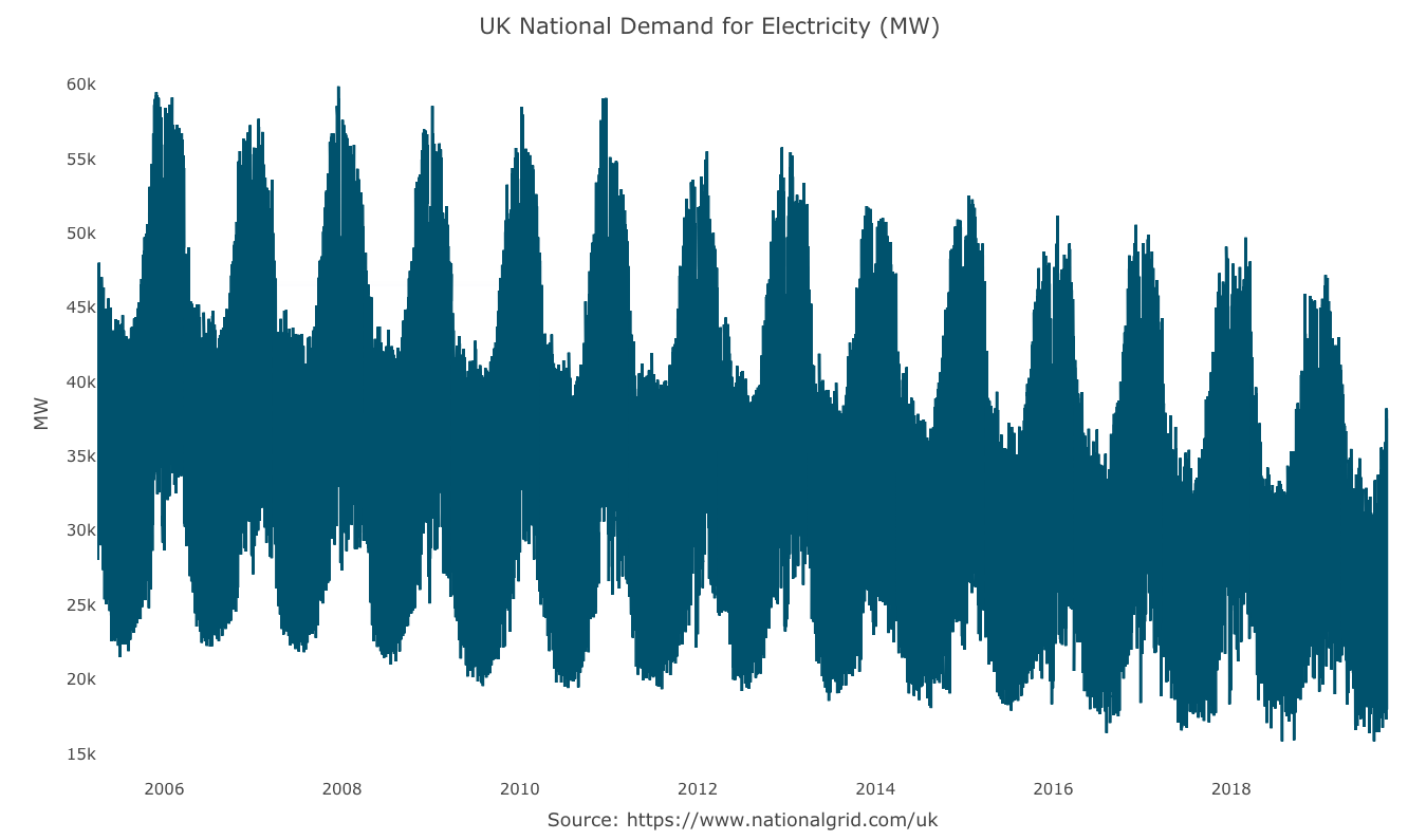 An R data package with the UK National Grid historical demand for electricity between April 2005 and October 2019