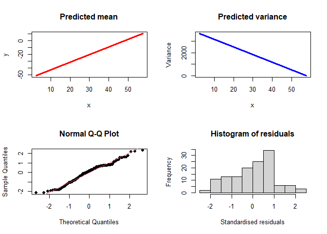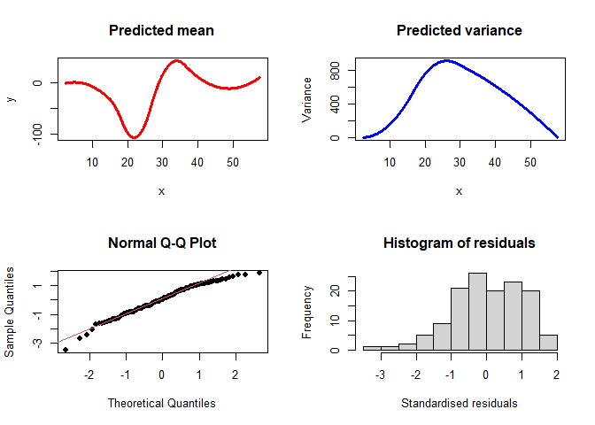 We can also run a model with semi-parametric mean (4 internal knots) and semi-parametric variance (2 knots):