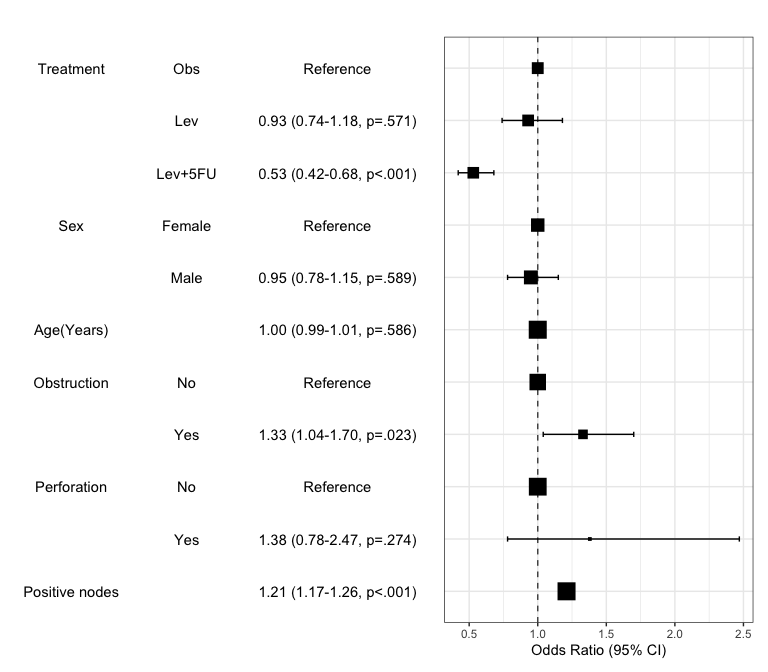 colon$obstruct.factor=setLabel(colon$obstruct.factor,"Obstruction")