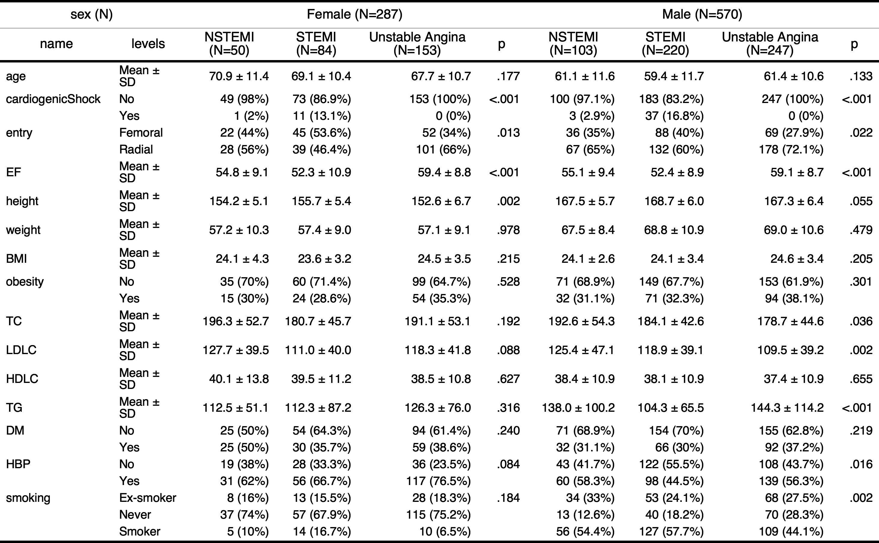 gaze(sex+Dx~.,data=acs) %>% myft()