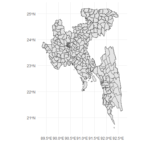 sylhet_chittagong_dhaka <- get_divisions(divisions = c("Sylhet", "Chittagong", "Dhaka"),level =  "upazila")