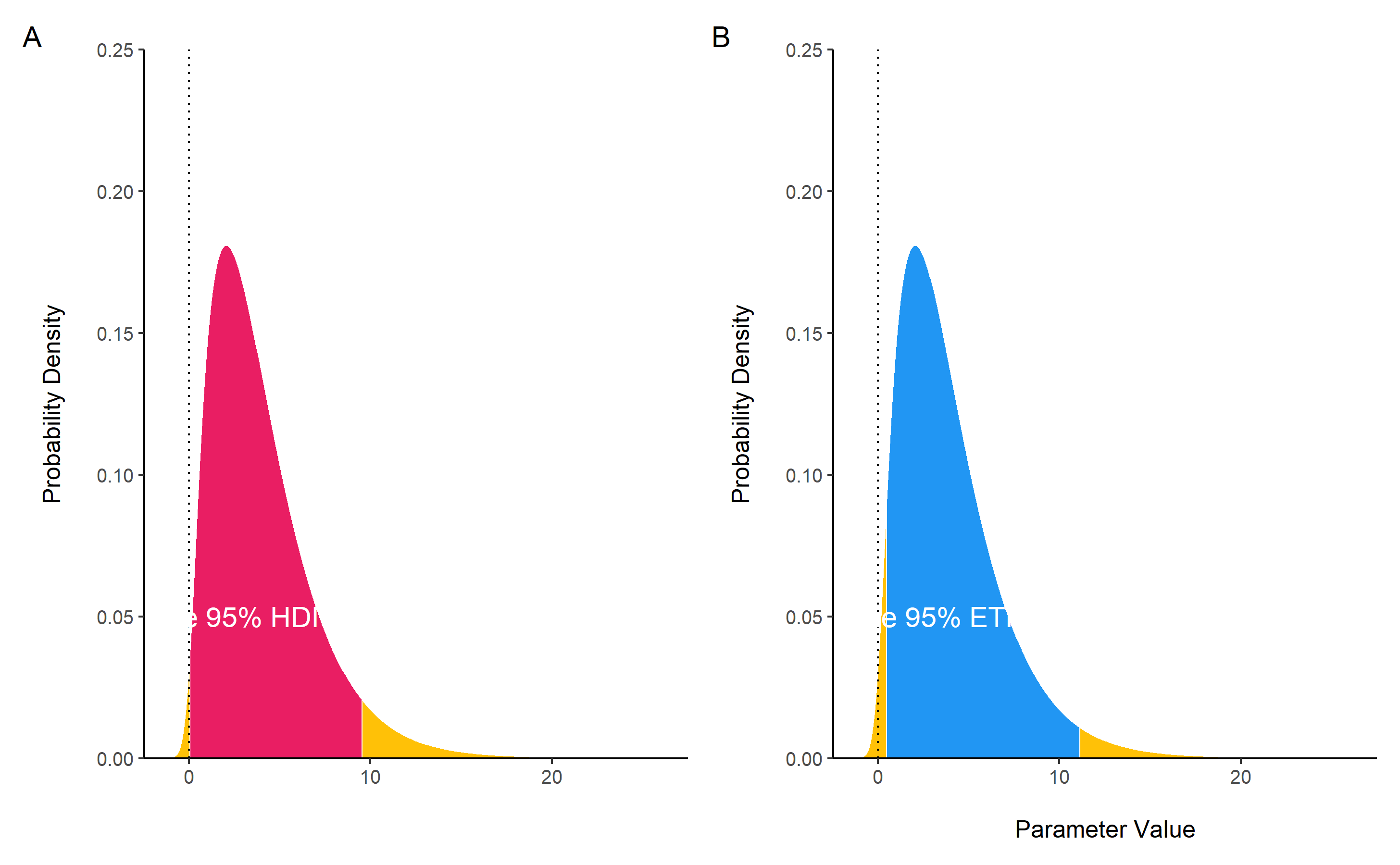 that typically exclude 2.5% from each tail of the distribution, the HDI