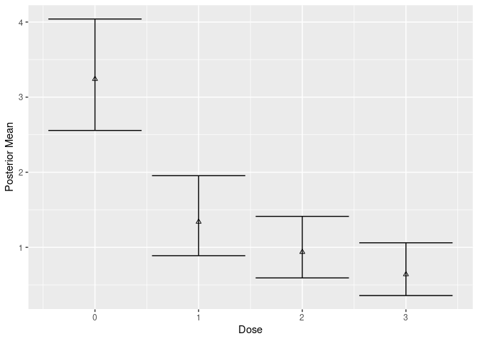 We now fit fit a Bayesian model where each dose is treated independently (no dose response) without covariates: