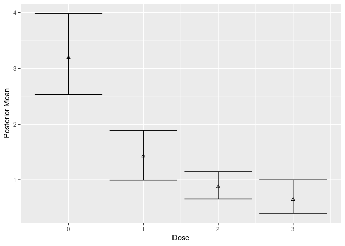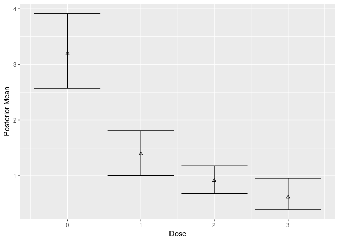post <- posterior(mcmc, contrast = matrix(1, 1, 1), doses = 0:3)