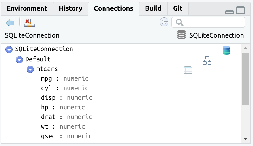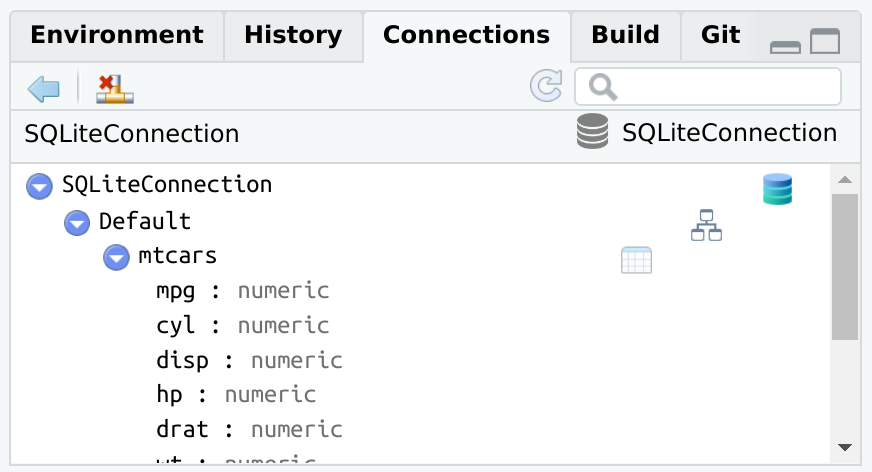 dbWriteTable(con, "mtcars", mtcars)