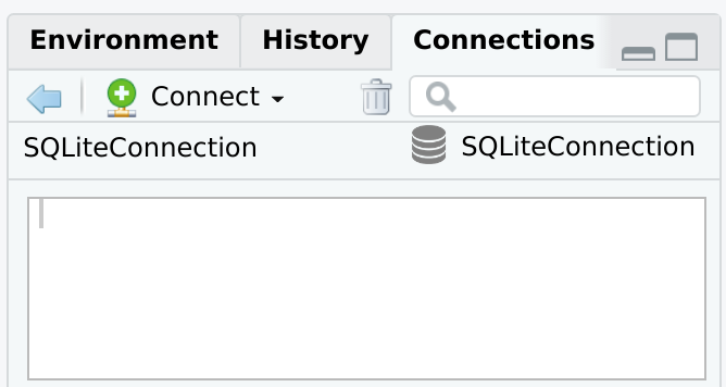 Pane. Packages such as RPostgres, RSQLite, RMariaDB and bigrquery connect R to