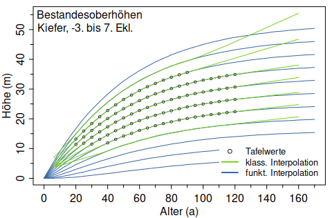 anhand von Bestandesalter und -höhe standardmäßig über funktionale