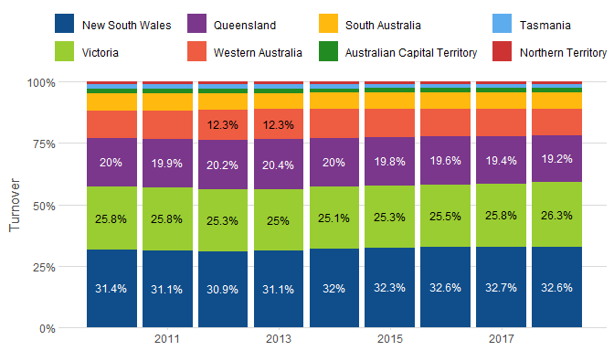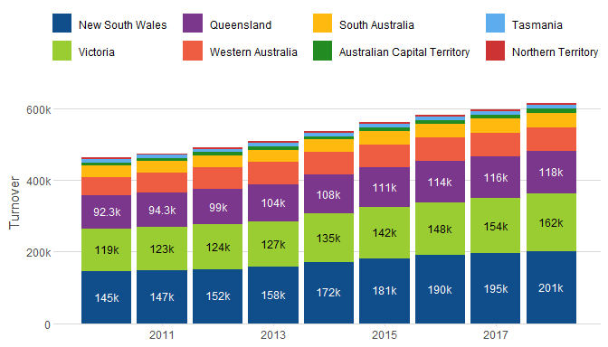 bar_plot(subset(aus_retail, year(Month) >= 2010),