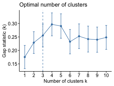 fviz_nbclust(fviz_gap_stat) Determining and Visualizing the Optimal Number of Clusters.