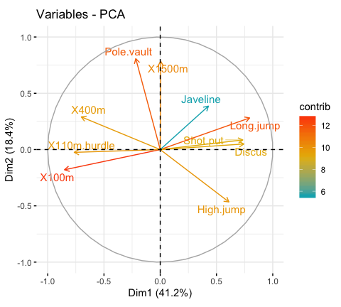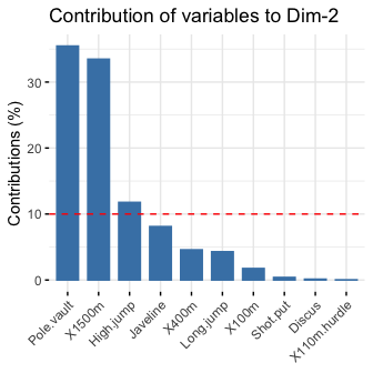 fviz_contrib Visualize the contributions of row/column elements from the results of PCA, CA, MCA functions.