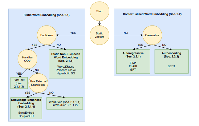 Moreover, the following figure - extracted from a survey (scientific paper) related to word embeddings and recent advancements in Large Language Models - shows the differences between static and contextualized word embeddings