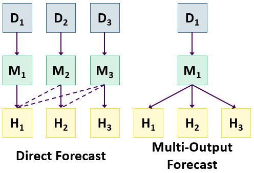 1. Build a single multi-output model that simultaneously forecasts over both short- and long-term forecast horizons.