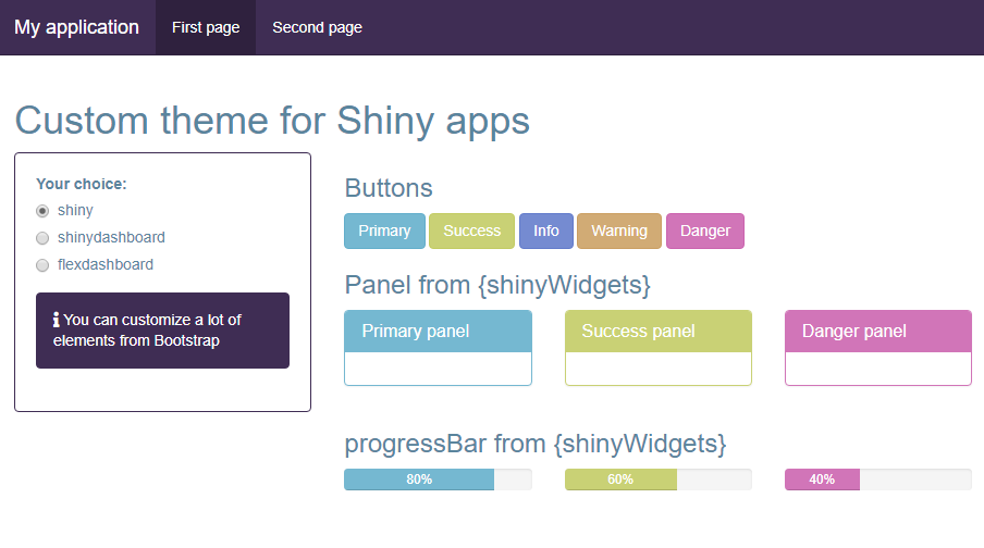 Create new themes to use in shiny applications with