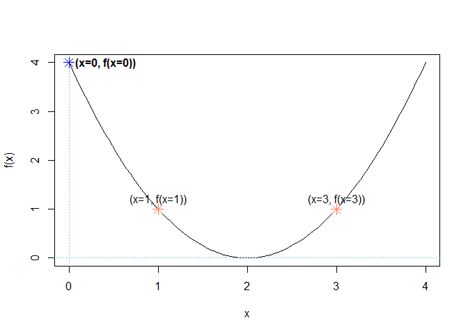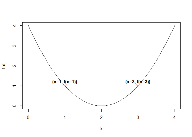 text(c(1, 3), c(f(1), f(3)), labels = c("(x=1, f(x=1))", "(x=3, f(x=3))"), pos = 3)