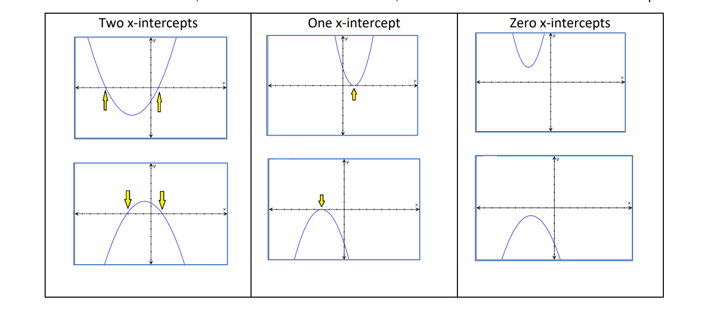 The x-intercepts are the solutions of the quadratic equation f(x) = 0; they can be found by using the quadratic formula: