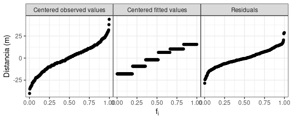 gg_rf(futbol, dist, ajuste, res, cen_obs = TRUE, ylabel = "Distancia (m)")