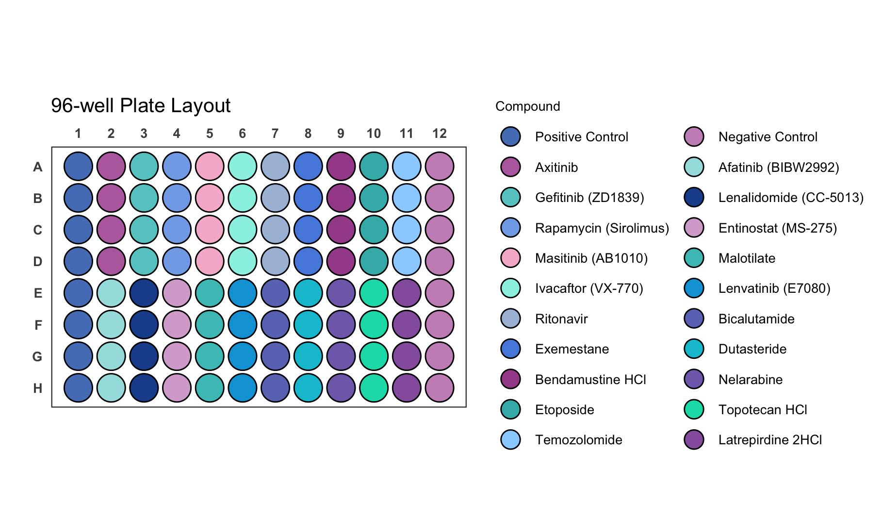 #> $ Compound_multiline: chr [1:96] "Positive\nControl" "Axitinib" "Gefitinib\n(ZD1839)" "Rapamycin\n(Sirolimus)" ...