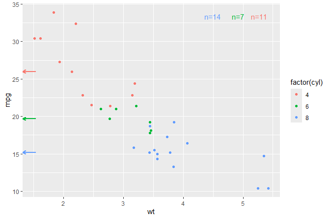 stat_group_counts() number of observations geom_text(), geom_label() text as annotation panel