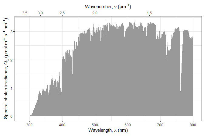 ggplot(sun.spct, unit.out = "photon") +