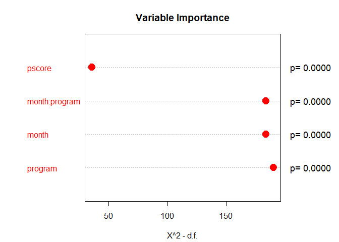 im22 <- assess(formula=los ~ ., data=hosprog, intervention = "program",