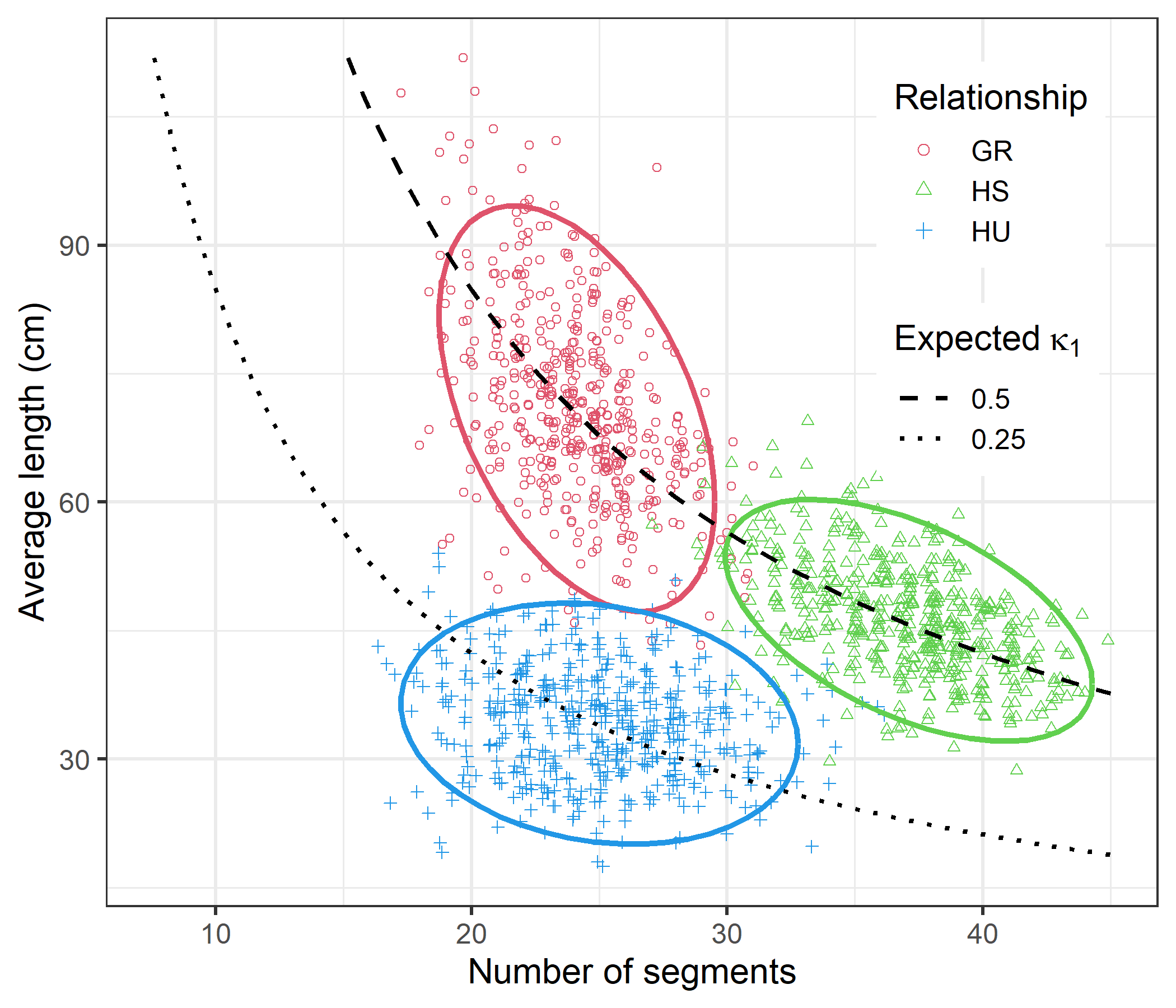 Note that GR and HS have the same relatedness coefficients