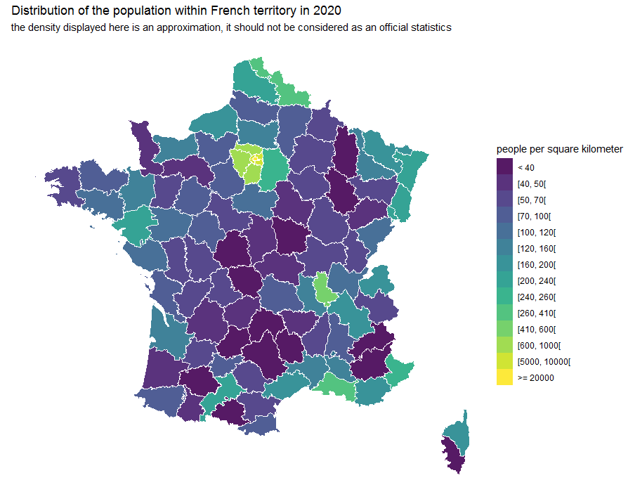 labs(subtitle = "the density displayed here is an approximation, it should not be considered as an official statistics")