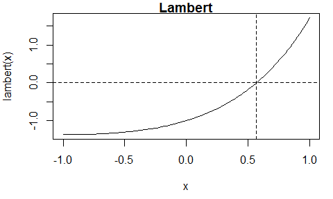 First, we supply an R function that evaluates the Lambert function.