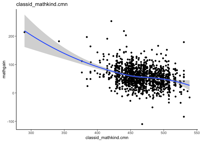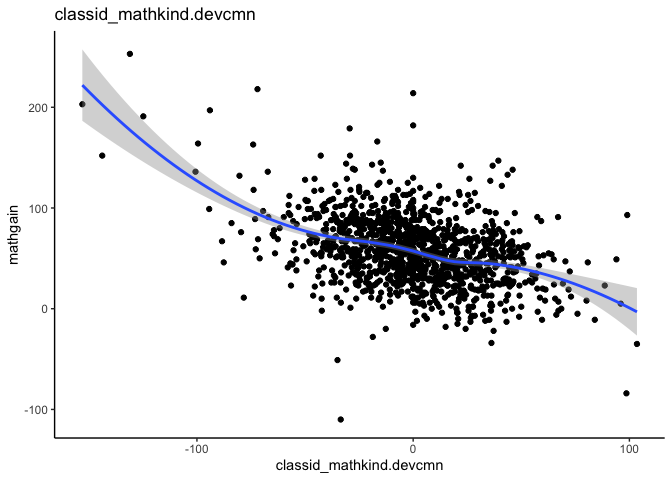 <- lmer(mathgain ~ classid_mathkind.devcmn + classid_mathkind.cmn + (1|classid), instruction)