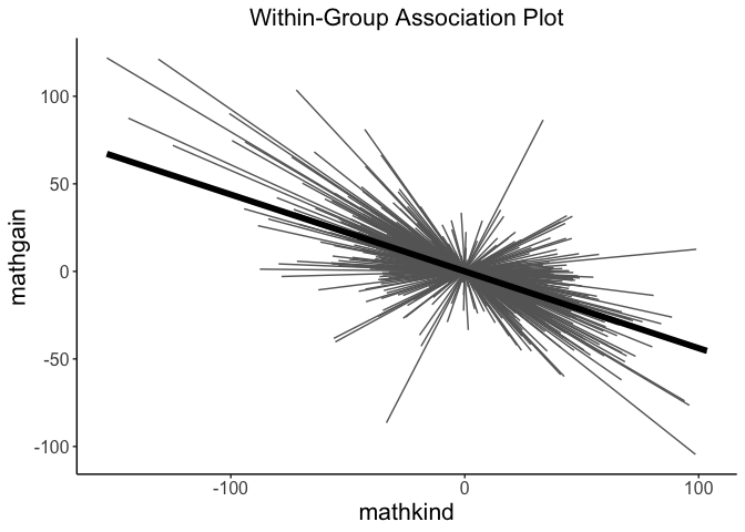 withinPlot(x = "mathkind", y = "mathgain", grouping = "classid", dataset = instruction)
