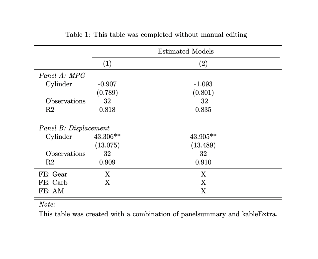 tables that have multiple panels. Paneled regression tables are