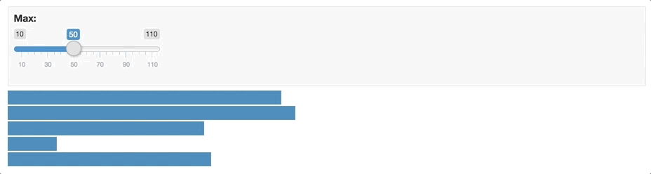 Using r2d3 with Shiny - Deriving insights from data is streamlined when users are able to modify a Shiny input, or click on a D3 visualization, and that action produces new results.