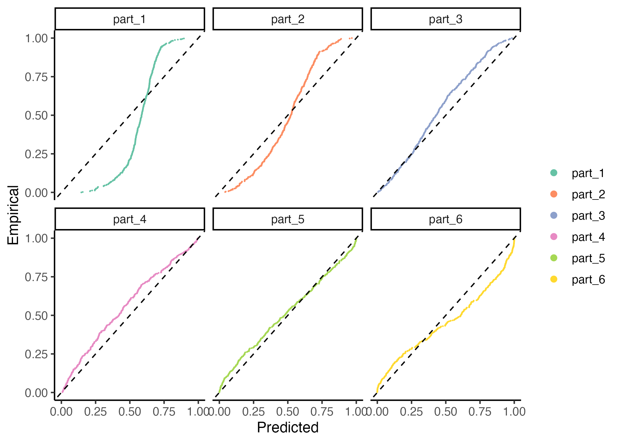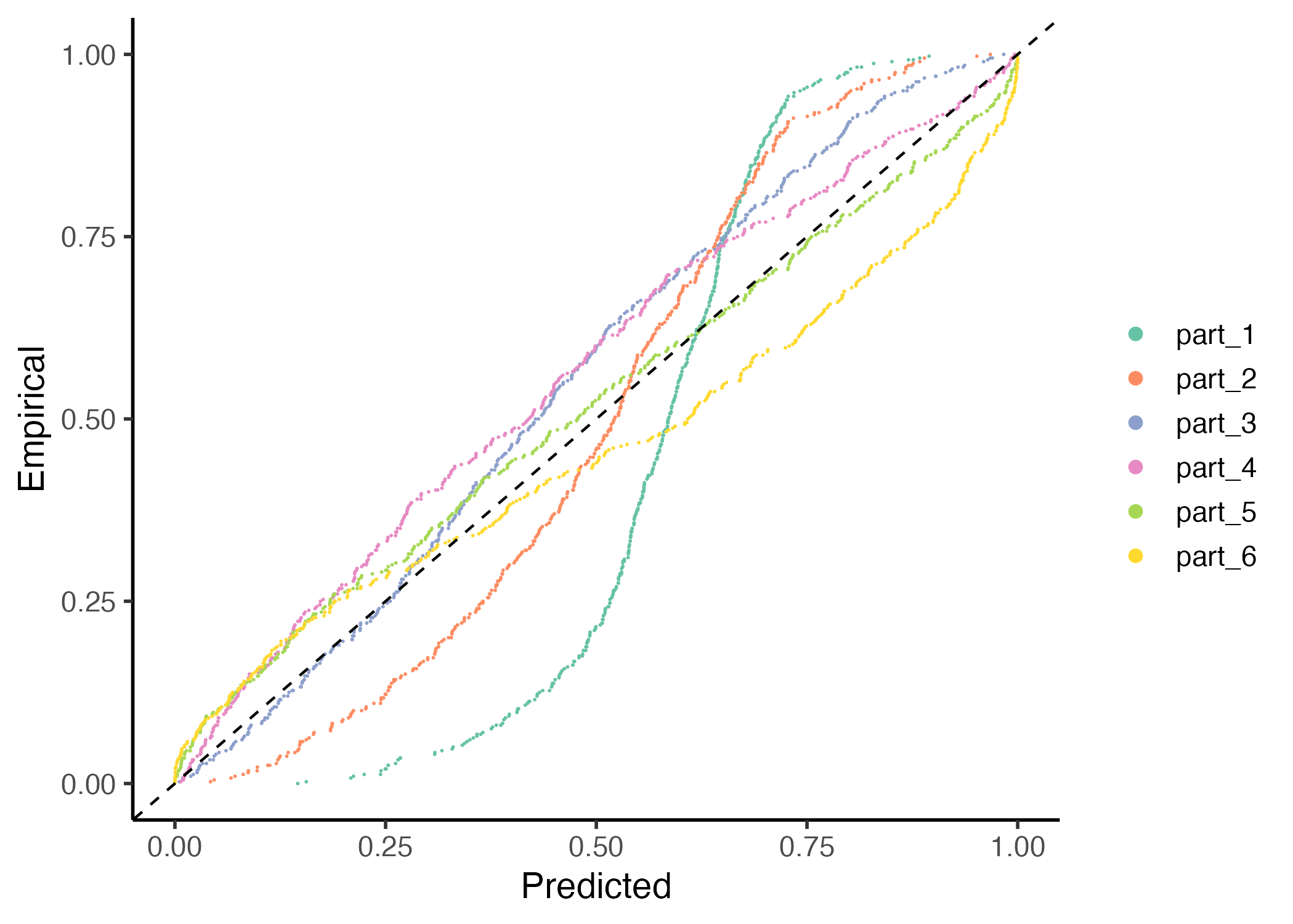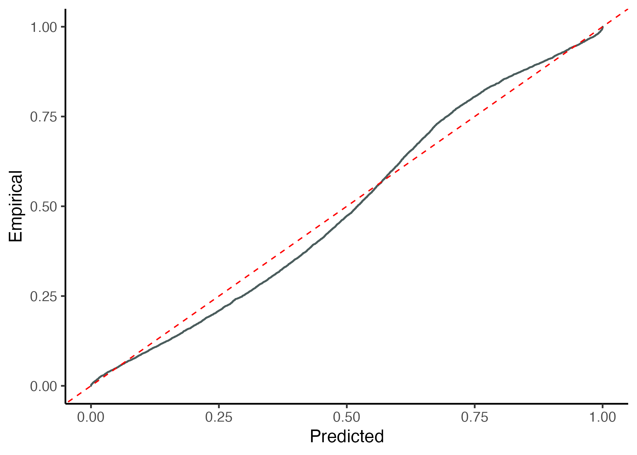 predictive distribution in the x-axis versus the empirical cumulative
