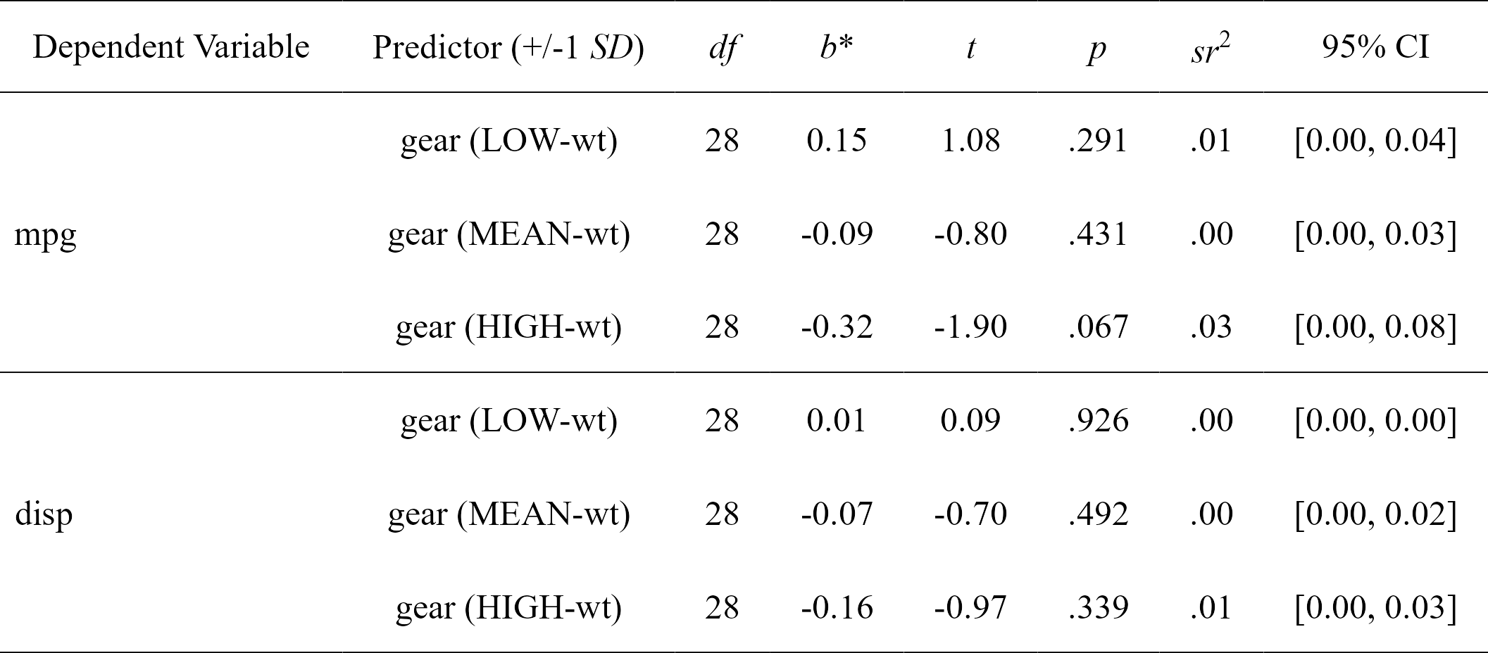 #> 4 disp cyl4 - cyl6 28 -2.703423 0.011534398020 -1.514296