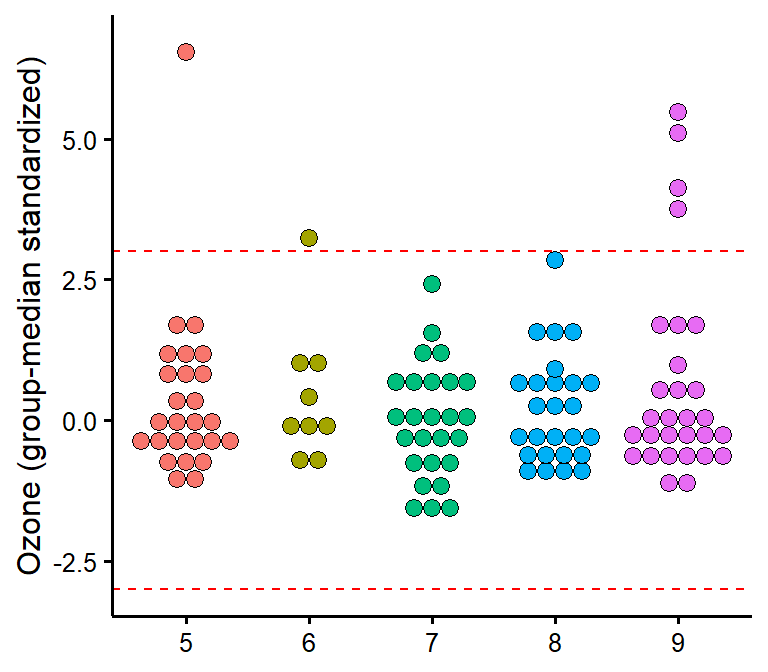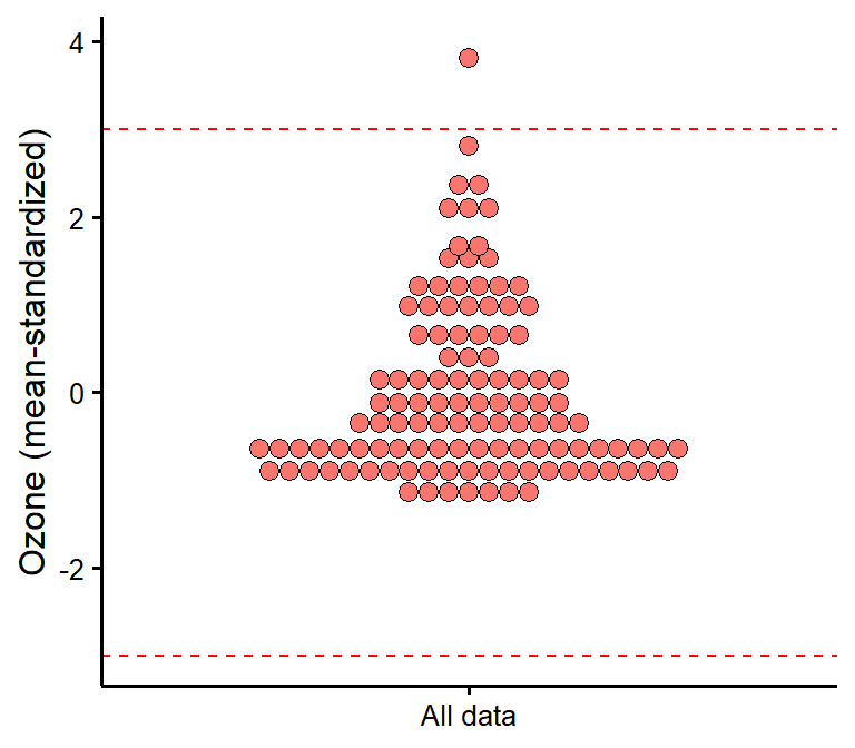 Visually check outliers based on (e.g.) +/- 3 MAD (median absolute deviations) or SD (standard deviations).