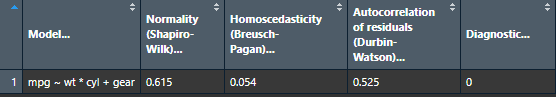 #> 1 mpg -3.767123 18.33225 0.001373638333 -1.477947 -2.2659732