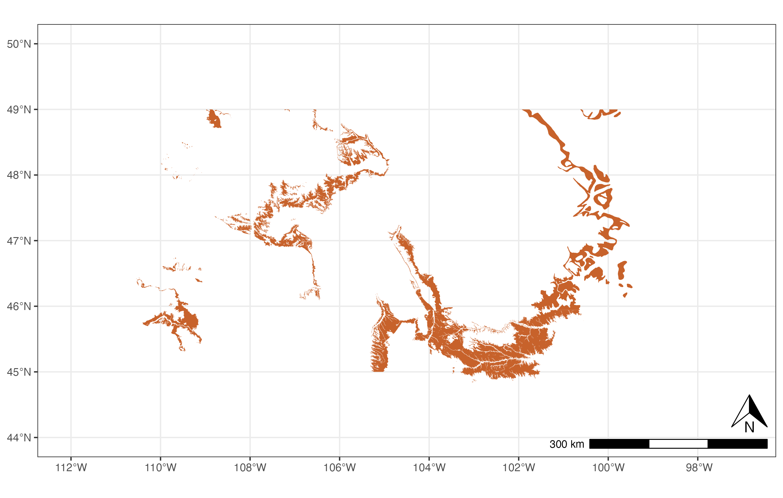 coord_sf(xlim = c(-112, -97), ylim = c(44, 50)) +