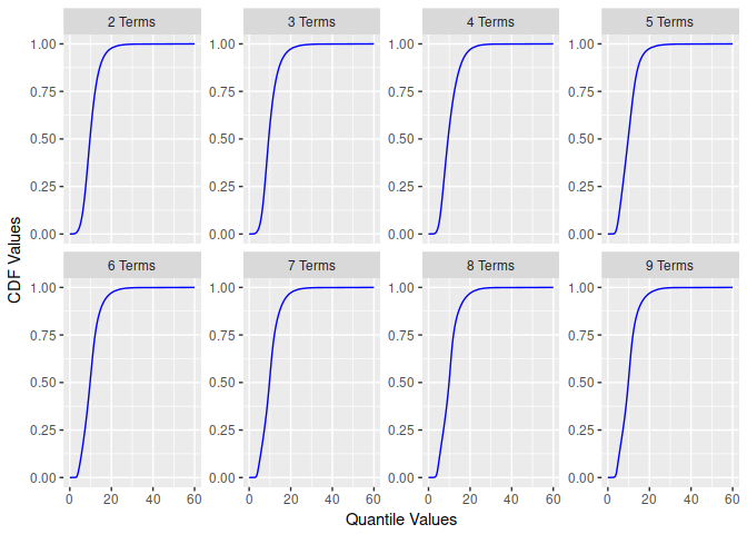 You can also retrieve quantile, density, and probability values similar to other R distributions.