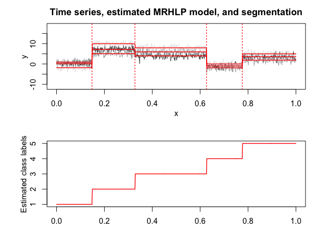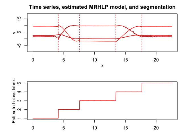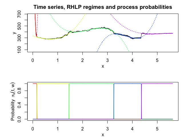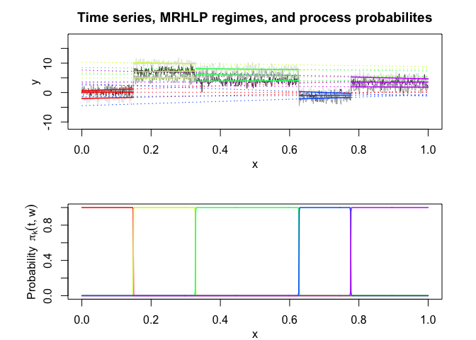 #> The MRHLP model selected via the "BIC" has K = 5 regimes