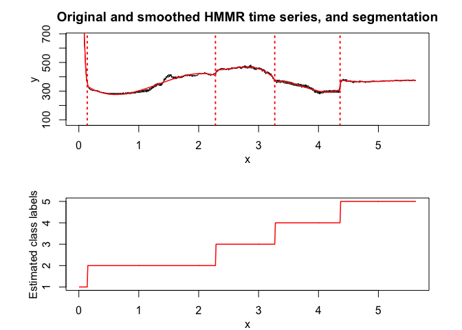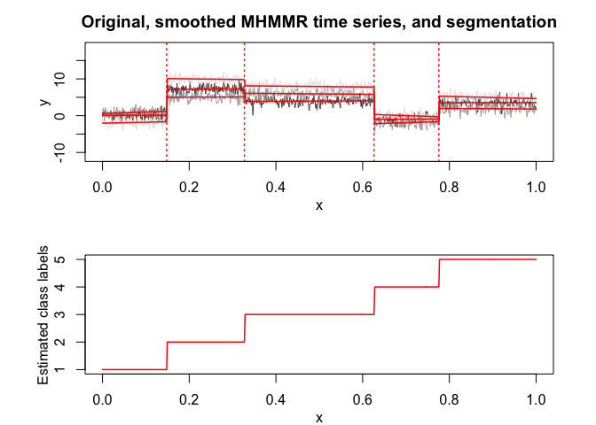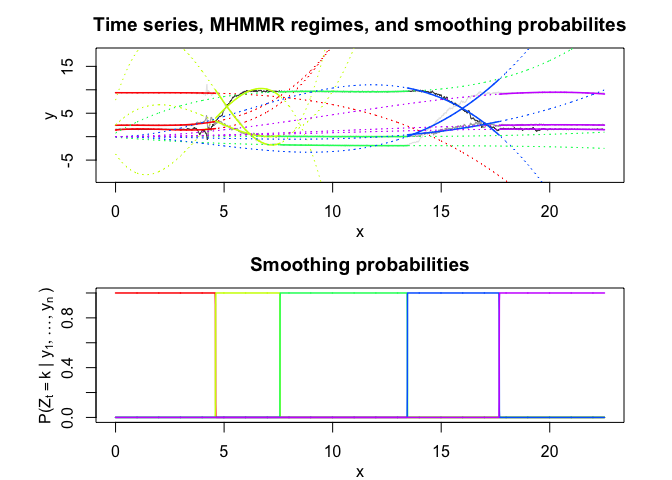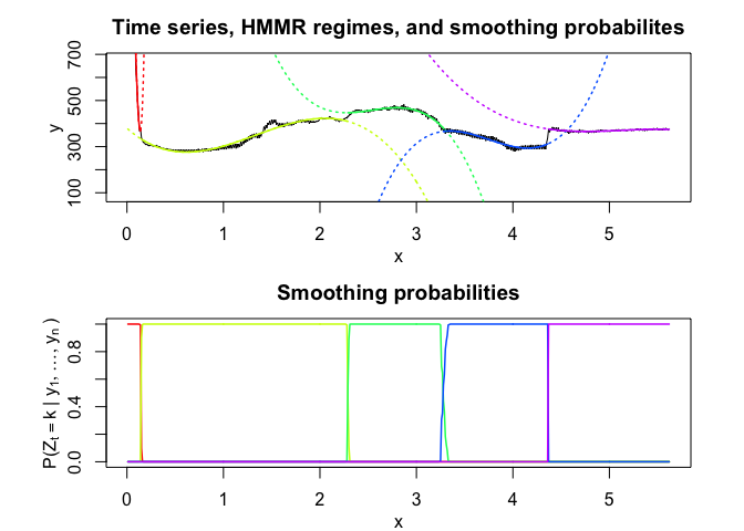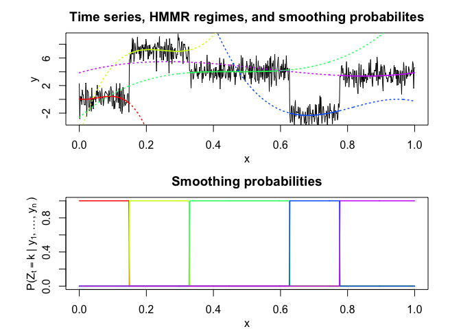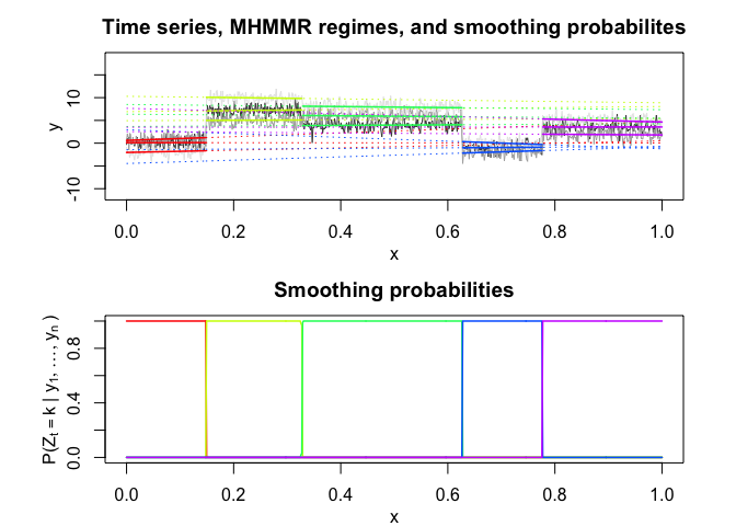#> The HMMR model selected via the "BIC" has K = 5 regimes